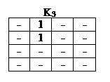 В клетках, в которых функция не определена или её значение не играет роли (т.е. ставится прочерк), можно помещать любые значения переменных, чтобы объединить контуром наибольшее количество клеток. Так, в табл. 4 для J1