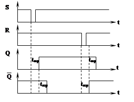 На рис 1.14.3 показаны временные диаграммы переключения RS – триггера с инверсными входами с учетом задержки переключения каждого элемента на tзад.ср.