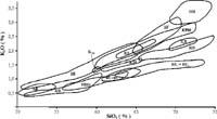 О дало возможность отнести пирокластику к тому или иному геохимическому типу пород, выделенных О.Н. Волынцом [39]. Это также явилось хорошим критерием идентификации продуктов разных вулканических центров (рис.4, табл.1). Более детально тефрохронологические работы велись вблизи действующих вулканов: здесь проводилось дешифрирование аэрофотоснимков и полевые исследования с картированием центров извержений (кратеров и кальдер), пирокластических потоков и покровов; в разрезах изучались как тефра, так и отложения пирокластических волн и пирокластических потоков.