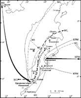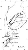 ), представленной почти целиком риолитовой тефрой. Главная ось пеплопада была направлена на восток (рис.9), мощность тефры на побережье океана составляет в разрезах 12-15 см. Здесь тефра погребла неолитическую стоянку, существовавшую более 1000 лет [21]. Значительная часть пепла выпала над акваторией Тихого океана. Юго-западным ветром пепловое облако было снесено на северо-восток, поэтому тонкий пепел покрыл значительную часть Восточной Камчатки, и прослежен здесь на расстояние 300 км от источника. Пепел этого извержения (ОП), наряду с пеплом КС1,