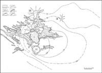 достигали длины 20 км; их отложения заполнили все долины на склонах вулкана за исключением южного сектора, где они экранировались высокими бортами более старых кальдер. Вблизи вулкана потоки, слившись между собой, образовали обширный пирокластический покров (рис.8). Общий объем отложений пирокластических потоков составил около 4 км3