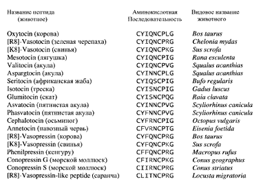 Таблица. 6. Структурно-гомологичное семейство окситоцин/вазопрессинов