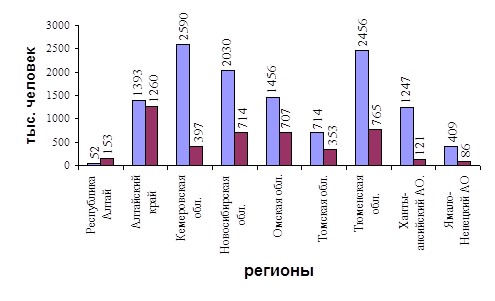 ). В Западной Сибири преобладает городское население, его доля составляет 73%. Крупнейшие города здесь — Новосибирск (1,5 млн. человек), Омск (1,2), Барнаул и Новокузнецк (по 0,6 млн. человек).