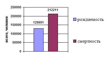 При сокращении доли детей и подростков в возрасте до 16 лет на 1,6 пункта, доля пожилых увеличилась на 363 пункта. По России эти соотношения сложились, соответственно, 1,3 и 2,1 пункта. В настоящее время средний возраст население области составляет 34,6 лет (в 1989 году - 32,6 лет). За прошедшие пять лет после всеобщей переписи населения средняя продолжительность жизни мужчин уменьшилась с 64 до 60 лет, женщин - с 74 до 72 лет.