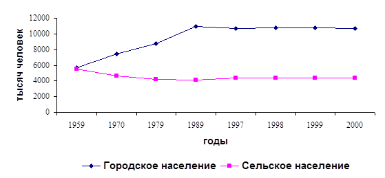 На начало 1966 года численность городского населения составила 1464 тыс. человек, а сельского населения 713,9 тыс. человек. Доля городского населения в общей численности с момента переписи населения 1939 года увеличилась с 24 до 67,2%, а сельского населения уменьшилась с 76 до 32,8%. Опережающий рост городского населения был обусловлен ускоренным развитием промышленного потенциала. С 1991 года процесс приобрел иной характер. В результате сокращения оттока сельских жителей в города численность сельского населения выросла на 26,3 тыс. человек (3,8%).