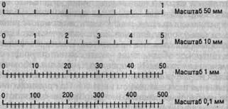 (графический интервал), принятого за единицу и измеренного в каких-либо мерах. Чем меньше масштаб (рис. 5.3), тем гуще располагаются на шкале точки, имеющие одно и то же значение. Построить шкалу -это значит на заданном носителе шкалы разместить точки и обозначить их соответствующими числами согласно условиям задачи.