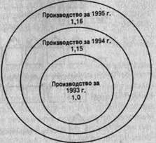 Однако такое сравнение кривых не дает достаточно полной картины динамики этих показателей, так как масштабы произвольны. Поэтому сравнение динамики уровня двух разнородных показателей следует осуществлять на основе использования одного масштаба после преобразования абсолютных величин в относительные. Примером такой линейной диаграммы является рис. 5.20.