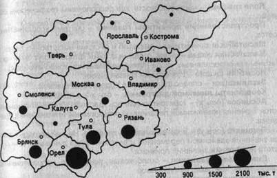 В качестве примера картодиаграммы возьмем изображение валового сбора зерна Центрального района России (рис. 5.27).