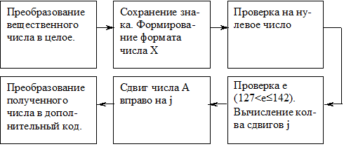 Поскольку мантисса результата формируется путем сдвига исходного числа влево, то регистры R2, R3 используем для размещения мантиссы результатов.