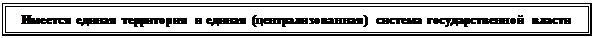 Унитарное государство - это цельное государство, части (территориальные подразделения) которого (департаменты, провинции, округа, и т. д.) являются только административно - территориальными образованьями, не имеющими каких - либо суверенных прав. У этих образований нет своего законодательства и своей судебной системы, органы административного управления либо подчинены непосредственно центральным органам власти, либо имеют двойное подчинение - "центру" и местным представительным органам. Все административно-территориальные единицы имеют одинаковый юридический статус равное положение по отношению к центральным органам. Они могут иметь в своей основе юридические акты, определяющие и закрепляющие их правовое положение (например, уставы). Административно-территориальные единицы не могут обладать какой-либо политической самостоятельностью. Однако в области хозяйственной, социально-культурной их полномочия могут быть достаточно широкими, позволяющими осуществлять управление территорией, учитывая при этом ее особенности.