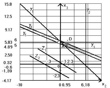 = 5. На графике решение задачи ЦЛП – точка B с координатами (1;5).