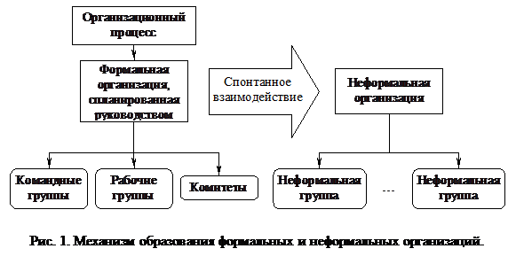 Формальная организация создается по воле руководства. Но как только она создана, она становится также и социальной средой, где люди взаимодействуют отнюдь не по предписаниям руководства. Люди из разных подгрупп общаются за чашкой кофе, во время собраний, за обедом и после работы. Из социальных взаимоотношений рождается множество дружественных групп, неформальных групп, которые все вместе представляют неформальную организацию.