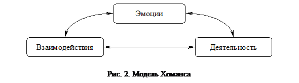 Очень важно понимать, что неформальные организации динамически взаимодействуют с формальными. Одним из первых, кто стал уделять внимание этому фактору, а также образованию неформальных организаций был Джордж Хоманс, теоретик в области исследования групп. В Модели Хоманса (рис. 2.) под видами деятельности понимаются задачи, выполняемые людьми. В процессе выполнения этих задач люди вступают во взаимодействие, которое, в свою очередь, способствует появлению чувств – положительных и отрицательных эмоций в отношении друг друга и начальства. Эти эмоции влияют на то, как люди будут осуществлять свою деятельность и взаимодействовать в будущем.