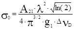 на конкретную величину, однозначно связанную со скоростью и направлением движения этой частицы. Естественно, что и поглощать излучение с фиксированной частотой смогут только те частицы, доплеровский сдвиг которых соответствует этой частоте. При максвелловском распределении излучающих частиц по скоростям где - средняя тепловая скорость; m - масса частицы. При этом линия излучения имеет гауссов профиль, описываемый форм-фактором .Аналогично с выражение нормировано на единицу .