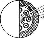 Снаружи световода располагается защитное покрытие для предохранения его от механических воздействий и нанесения расцветки. Защитное покрытие обычно изготавливается двухслойным: вначале кремнеорганический компаунд (СИЭЛ), а затем—эпоксидакрылат, фторопласт, нейлон, полиэтилен или лак. Общий диаметр волокна 500...800 мкм (рис. 1).