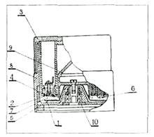 На рисунке показан емкостный датчик, реализующий способ. Он состоит из корпуса измерительной камеры, дно которой представляет собой электрод 1