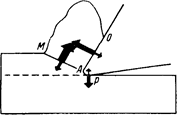 показана схема сил, действующих в зоне резания. Считая, что вся работа резания в единицу времени , работа трения стружки по передней поверхности —усадка стружки), получим работу деформации стружки