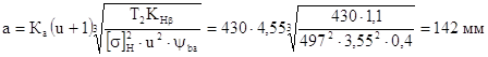 Межосевое расстояние равно 140 мм из условия соосности, значения всех коэффициентов, используемых в расчете третьей ступени справедливы при расчете данной ступени.
