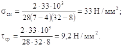Все шпонки удовлетворяют условию прочности на срез и смятие.