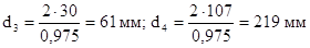 Находим диаметр ведомого шкива, приняв относительное скольжение ε = 0,02: