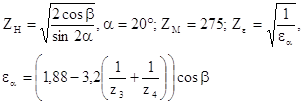 Коэффициент на форму зуба ; коэффициент нагрузки ; коэффициент ширины венцов ; коэффициент, учитывающий динамическую нагрузку, возникающую в зацеплении ; коэффициент, учитывающий распределение нагрузки между зубьями