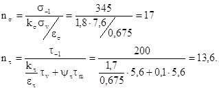 Материал валов – сталь 40Х улучшенная, . Определим коэффициенты запаса прочности в опасных сечениях.