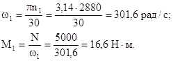 Выбираем сечение клинового ремня, предварительно определив угловую скорость и номинальный вращающий момент ведущего вала: