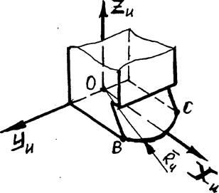 в) существования (Ru=/0) и величины радиуса движения режущей кромки относительно центра си системы координат, предполагаемого инструмента (Х2,Y2,Z2); заданного выбираемой линией режущей кромки.