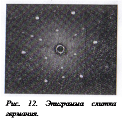 . Ориентировку монокристаллов полупроводниковых материалов по методу Лауэ производят на установках УРС-60 при использовании немонохроматического излучения. Так как в производстве применяются монокристаллы больших размеров, то используется съемка на отражение, т. е. метод эпиграмм. Принцип метода заключается в следующем. При падении рентгеновского излучения на торец слитка отраженные лучи возникают только от тех систем плоскостей hkl, для которых выполняется условие Вульфа-Брегга. Обычно используют отражения под большими углами θ, близкими к 90°. Используя камеру РКСО, устанавливают при помощи специального осветителя камеры отполированный торец слитка нормально падающему пучку рентгеновских лучей, т. е. параллельно поверхности рентгеновской пленки. Пучок рентгеновских лучей при этом проходит через специальное отверстие в кассете с пленкой.