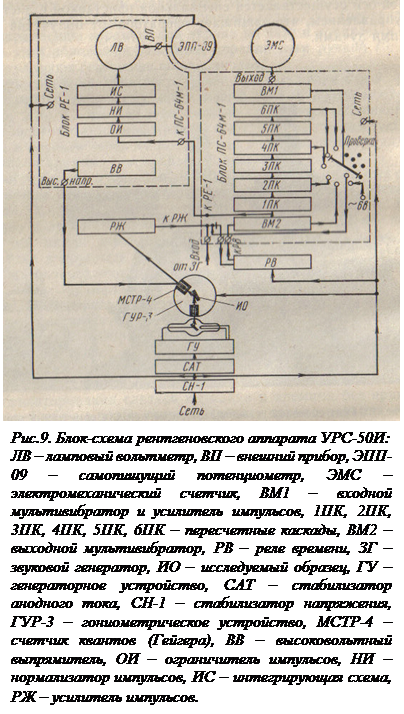 Блок схема рентгеновского аппарата УРС-50И приведена на рис. 9 (см. приложение 2).