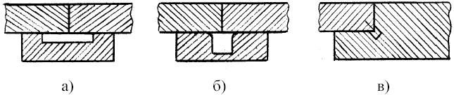а) замковое; б) стыковое с канавкой, полученное гибкой; в) стыковое с канавкой, полученной резанием.
