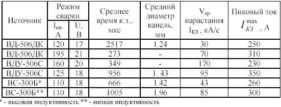 Косвенно полученный вывод подтверждает результат по использованию другого импульсно-дугового источника, но работающего на промышленной частоте – ВДГИ-302. В этом случае, уменьшение частоты следования импульсов со 100 до 50Гц, т. е. не стремление к струйному переносу, а стремление фиксировать размер капель электродного металла на уровне 0,8-1 мм, позволило получить самые высокие результаты.