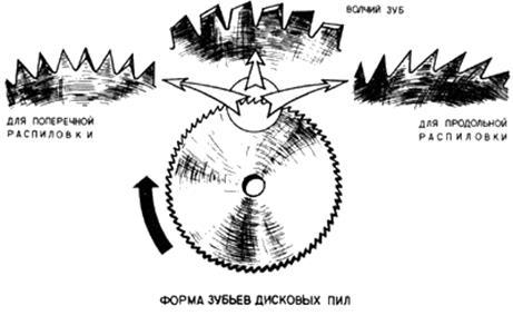 Дисковые пилы во много раз ускоряют процесс распиловки древесины и применяются главным образом для продольной распиловки пиломатериалов и изготовления реек. У бархатных или строгающих пильных дисков своеобразными резцами, строгающими поверхности пропила, служат кромки, образуемые впадинами. Скошенная форма зуба и наличие большой впадины между группами зубьев обеспечивают при правильной заточке гладкую поверхность распила, почти не требующую дальнейшей обработки рубанком.