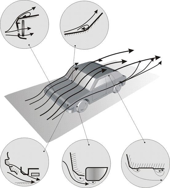 Однако аэродинамика влияет не только на скоростные качества автомобиля и расход топлива. В ее компетенцию входят также задачи обеспечения должного уровня курсовой устойчивости, управляемости автомобиля, снижения шумов при его движении.
