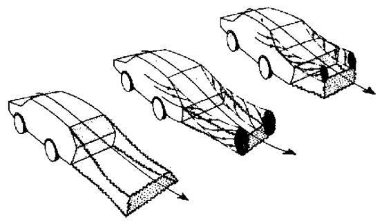 Схематичное изображение формы потока при различных исполнениях задней части автомобиля