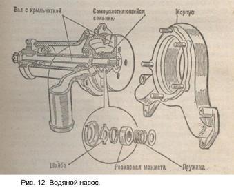 Коленчатый вал (рис. 4) состоит из шатунных и коренных шлифованных шеек, щек и противовесов. На переднем конце вала двигателей ЗМЗ-53-12 и ЗИЛ-130 имеется углубление для шпонки распределительной шестерни и шкива привода вентилятора, а также нарезное отверстие для крепления храповика; задняя часть вала выполнена в виде фланца, к которому болтами прикреплен маховик. В углублении задней торцовой части коленчатого вала расположен подшипник ведущего вала коробки передач.