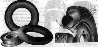 1 — обод колеса; 2 — покрышка; 3 — камера; 4 — вентиль