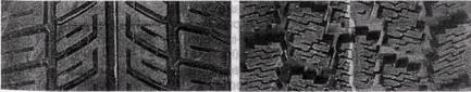 собность шины, которая ухудшается с увеличением толщины протектора. От рисунка протектора существенно зависит и износостойкость шины, т.е. ее срок службы. Для дорожных шин важным считается бесшумность качения на высоких скоростях, экономичность и т.п. Поэтому количество и разнообразие применяемых на шинахрисунков протектора огромно и не поддается классификации, так как ежегодно появляются все новые и новые образцы шин с оригинальными рисунками протектора.