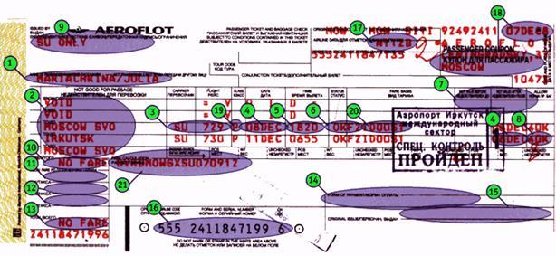 На внешнем бланке билета напечатаны общие правила, характерные для всех рейсов авиакомпании. На внутреннем - конкретные условия перелета. Сам билет имеет стандартную форму, используемую подавляющим большинством авиаперевозчиков во всем мире. Изучите ее один раз и в будущем, отправляясь в путешествие, Вы будете чувствовать себя значительно увереннее.