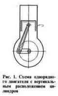 Однорядные двигатели характеризуются простотой конструкции и сравнительно высокой технологичностью изготовления. Указанные преимущества, а также большой опыт построения и эксплуатации двигателей с вертикально расположенными цилиндрами обусловливают широкое применение подобных двигателей.