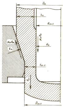 силы трения, действующие на наружной поверхности заготовки, имеют направление, обратное движению пуансона. Удлинение заготовки при утонении приводит к тому, что в очаге деформации она скользит вверх по пуансону, а силы трения на внутренней поверхности заготовки действуют в направлении движения пуансона.
