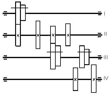 Для нашего примера, в соответствии с приведенными выше требованиями к компоновке коробки скоростей выбираем следующий