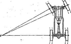 Для того чтобы при движении автомобиля на повороте колеса его имели качение без бокового скольжения, они должны катиться по окружностям, описанным из одного центра, который называется центром поворота.