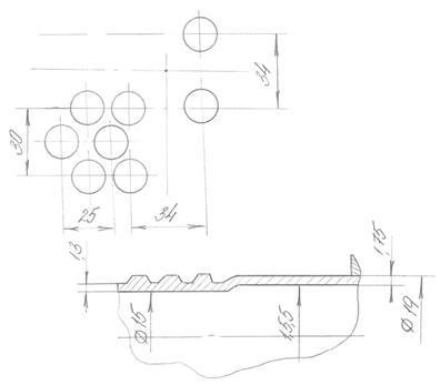 Морозильные плиты имеют конический профиль. При расположении в двух торцевых дисках обе стороны плиты используются для замораживания рыбы. Ка ждая плита Разделена на две равные части с поперечной планкой. По каналам морозильных плит циркулирует х.а. (R-22), который поступает и отводится через малый вал ротора, разделённый на две части и два кольцевых коллектора. Диаметр подводящей медно-никелевой трубки – 10 мм, отводящей 15 мм. Для равномерного распределения жидкого х.а. по морозильным плитам на входе подводящих трубок установлены дроссельные шайбы с внутренним диаметром 3,1 мм.
