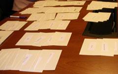 После того, как вы определитесь с группами, мы бы хотели, чтобы вы присвоили каждой группе название, какое посчитаете нужным. Вы можете создавать подгруппы, если думаете, что они нужны. Если вы полагаете, что чего-то не хватает, вы можете написать это на пустой карточке. Кроме того, если название на карточке кажется вам недостаточно понятным, напишите на карточке более понятное вам название. И наконец, если вы считаете, что что-то в карточках лишнее, положите лишние карточки в особую стопку.