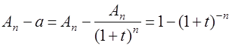 и отбрасывая все члены бинома, кроме первых двух получим формулу приближенного нахождения стоимости капитала без процентов на него ntAn