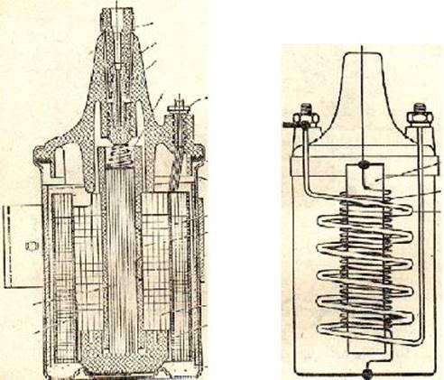 Катушка зажигания предназначена для преобразования тока низкого напряжения в ток высокого напряжения по исполнению катушки зажигания бывают экранированные и не экранированные.
