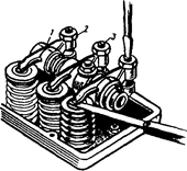 Утечка воздуха через клапаны двигателя обнаруживается визуально по колебанию пушинок индикатора, вставляемого в отверстие свечи (форсунки) одного из соседних цилиндров, где открыты в данном положении клапаны.
