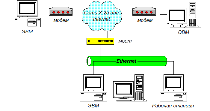 Рисунок 6 - Принцип объединения компьютеров в глобальных сетях.