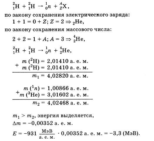 Напишите уравнение термоядерной реакции и определите ее энергетический выход, если известно, что при слиянии двух ядер дейтерия образуется нейтрон и неизвестное ядро.